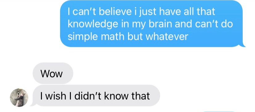 I experienced a different kind of dissonance when I moved to Chicago for grad school - holy shit did I learn how different my brain is when it gets a full nights sleep. I had become so used to the grind of teaching that I had accepted that lifestyle as how I showed up as a “worker.” This view of myself changed in grad school - aka “brain spa” - when I got to take classes just because I was interested in the topic (I truly had no business taking a class about AI, where most of the classmates were machine learning geniuses. Literally every project I turned in was about the algorithm of dating apps. I did get an A though, so take that, nerds!!) and the pressure to be good at my work was soooo much lower. As a teacher, if I slacked off on my lesson plans I was screwing over 60 young people. In grad school, if I fucked off on a paper, the only thing I was risking was my grade, and C’s get degrees baby!!!